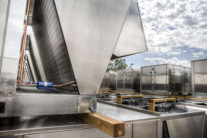 The DRU™ is a low profile exact replacement A/C unit for buildings that are currently equipped with outdated cooling or heating equipment. United Metal Products specifically designs the Direct Replacement Unit to match all pre-existing equipment penetrations so that no new curbs are needed. The DRU is also designed to closely match the operating weights of your current equipment, which means in most cases that no structural modifications are needed. The custom fit design of the Direct Replacement Units makes them perfect for customers who have multiple site replacement needs.